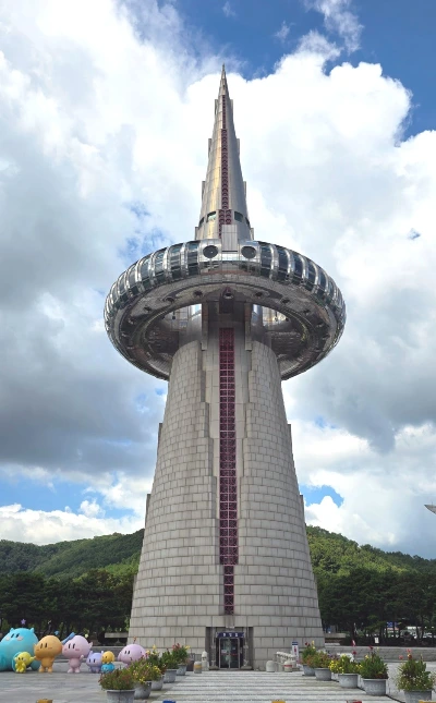 멀리서 보던 것 보다 훨씬 큰 한빛탑 아래에는 옹기종기 꿈돌이 가족이 모여있었다.