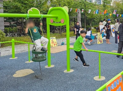 놀이터를 빙 둘러가며 아이들이 참여할 수 있는 체험 거리가 준비되고, 집집마다 들고 나온 작은 장난감이 새 주인을 기다린다. 놀이터 한켠에 마련된 먹거리 코너가 플리마켓 분위기를 한층 끌어올린다.