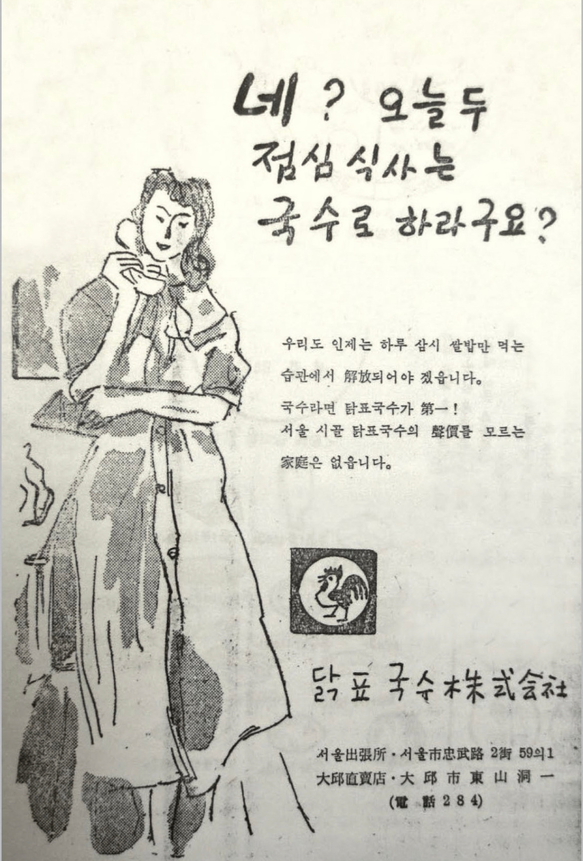 벼의 품종 개량으로 쌀 생산량이 확대되고, 라면과 식빵과 같은 분식이 식생활의 주류를 차지하게 되자 1980년대부터 정부 주도의 혼분식 장려 운동 역시 사라지게 되었는데, 이즈음 사랑방칼국수 식당 또한 메뉴를 개편하게 되니 하얀 쌀밥과 먹을 수 있는 <백숙백반>이다. 50여 년을 훌쩍 넘었다고는 하지만 허름한 외관의 식당 하나가 정부 정책의 시대적 변화와 동네의 역사를 모두 품고 있다니 놀라운 일이다.