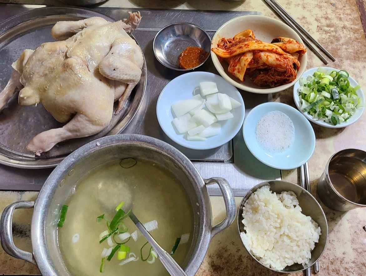 이 조건에 완벽히 부합되는 음식이 바로 1968년 개업한 사랑방칼국수의 <백숙백반>이다.