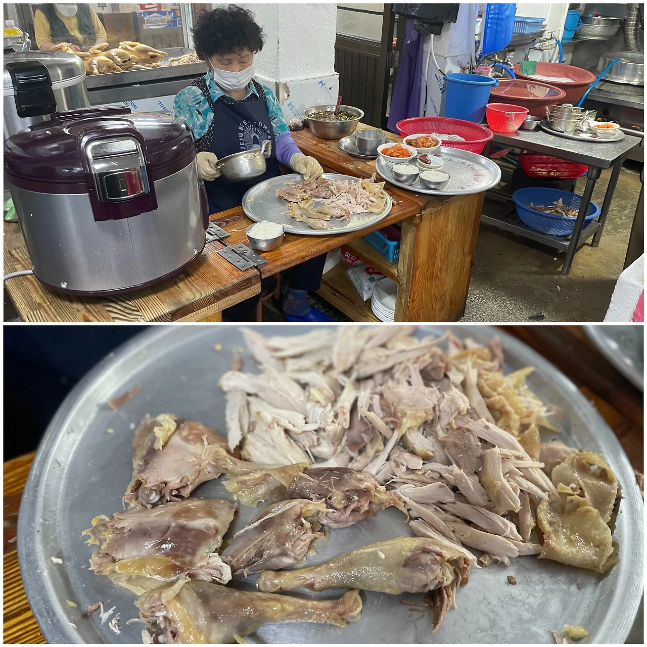 식당 입구에는 할머님께서 한소끔 식힌 닭을 손으로 잘게 찢고 계신데, 식당 안으로 들어서면서부터 음식은 아직 입에 대지도 않았건만 맛있다는 평가가 절로 내려지게 된다.