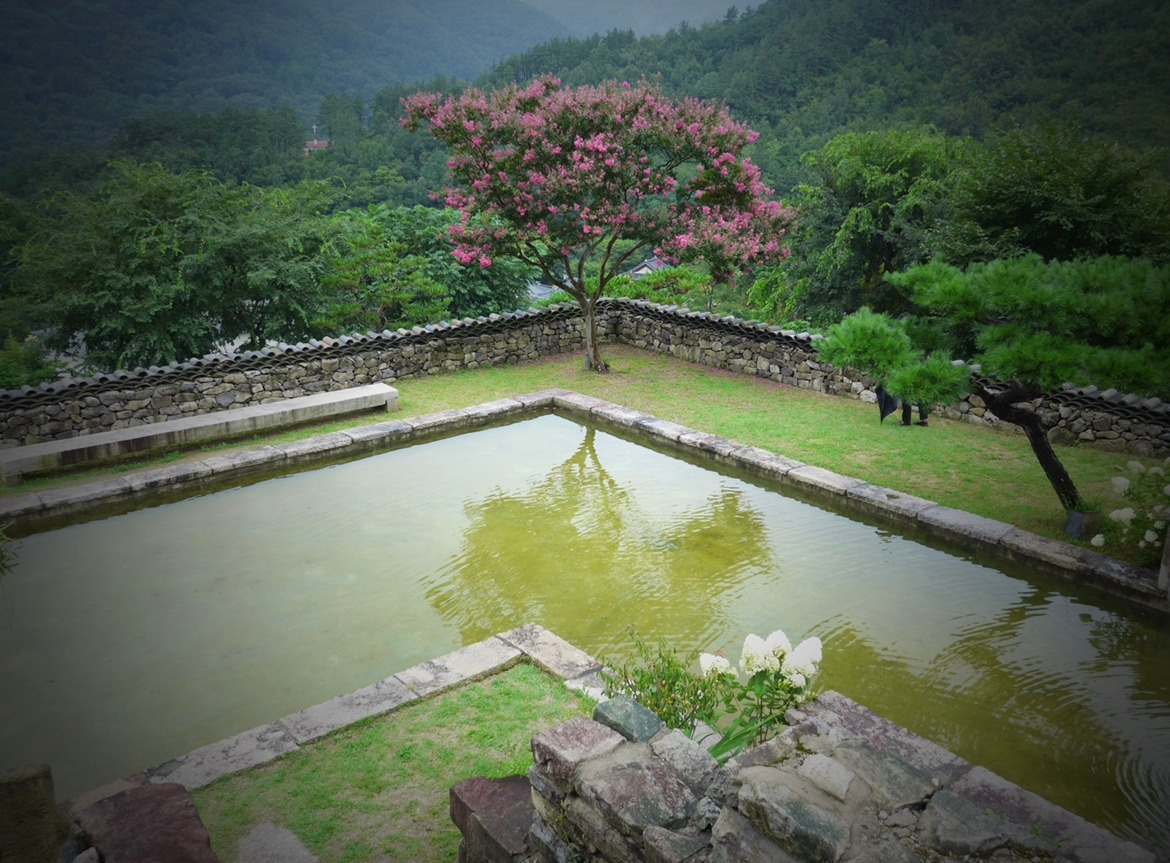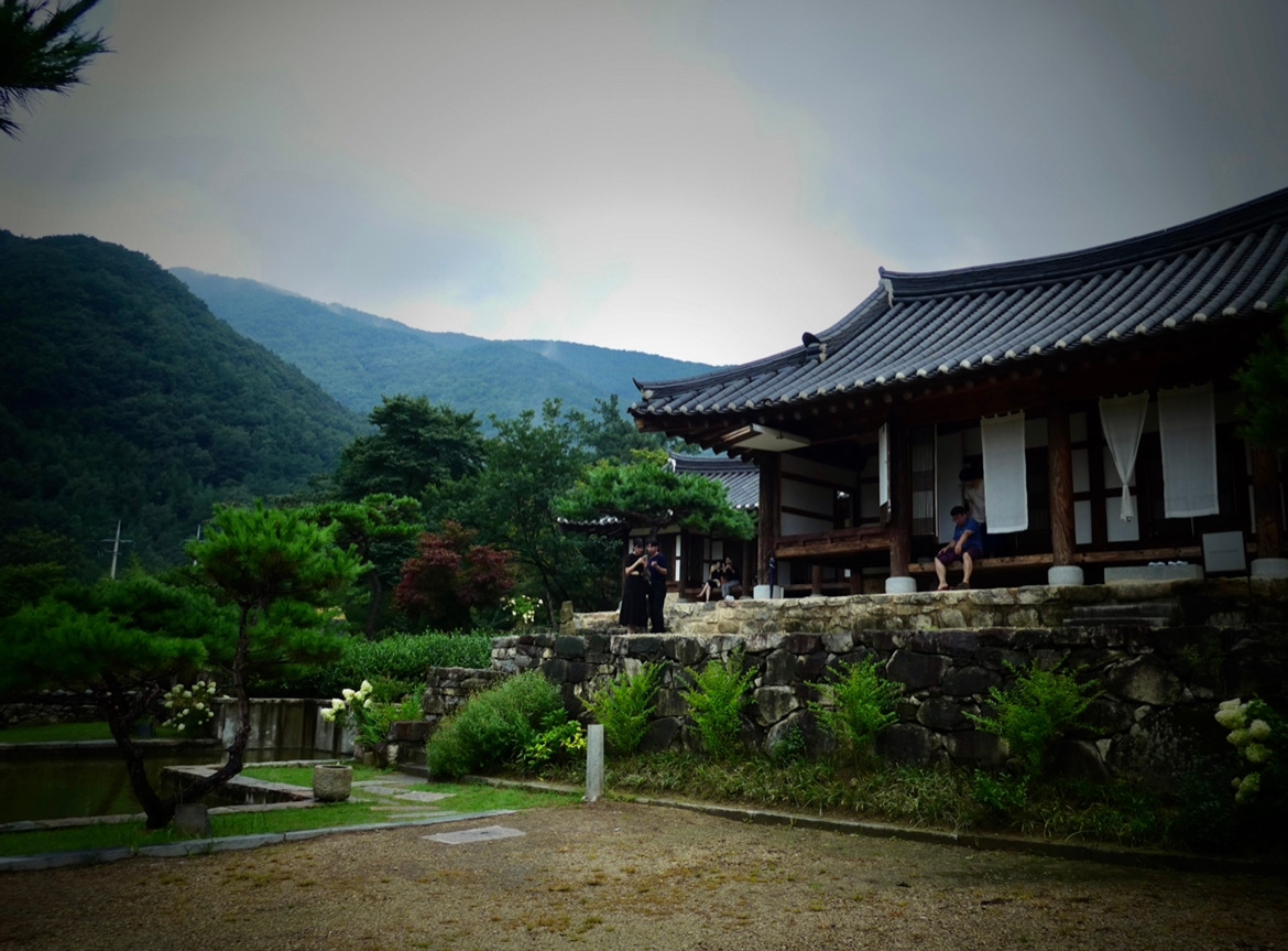 실제 이 공간에서 머무르는동안 비가 왔는데, 창 밖으로 보여지는 종남산 중턱에서 피어나는 물안개, 물웅덩이로 떨어지는 빗방울, 빗물을 한껏 머금고 아름다움을 발하는 수국, 수묵화를 수묵담채화로 변화시켜버리는 붉은 색 백일홍 등 바깥풍경을 바라보는 내내 힐링 지수가 올라가는 것이 느껴질 정도였다.
