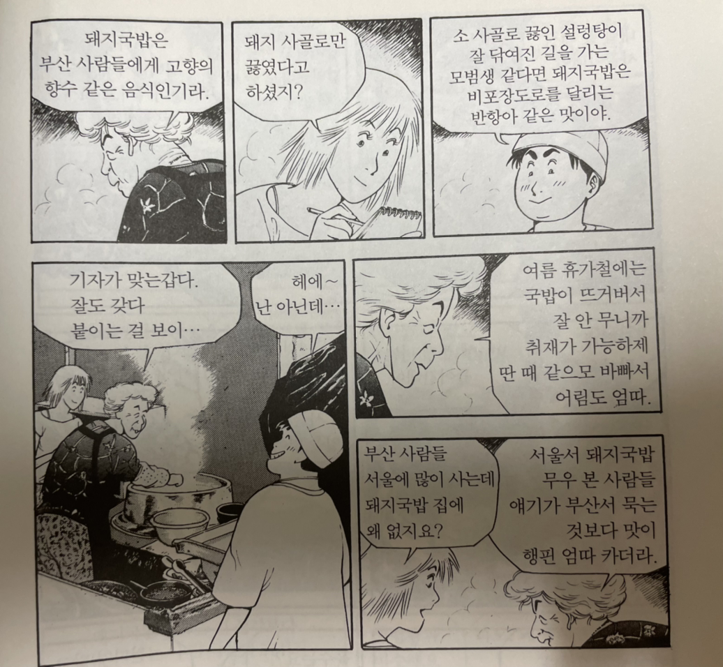 2006년 허영만 선생님은 요리만화 '식객'에서 돼지국밥을 '부산사람에게 향수 같은 음식'이라 소개한 바 있고, 2013년 12월 개봉한 영화 '변호인'은 故 노무현 대통령과 부산 부림 사건이라는 실화의 힘을 업고 부산 돼지국밥을 명실상부 전국구 음식으로 주목받게 했다.