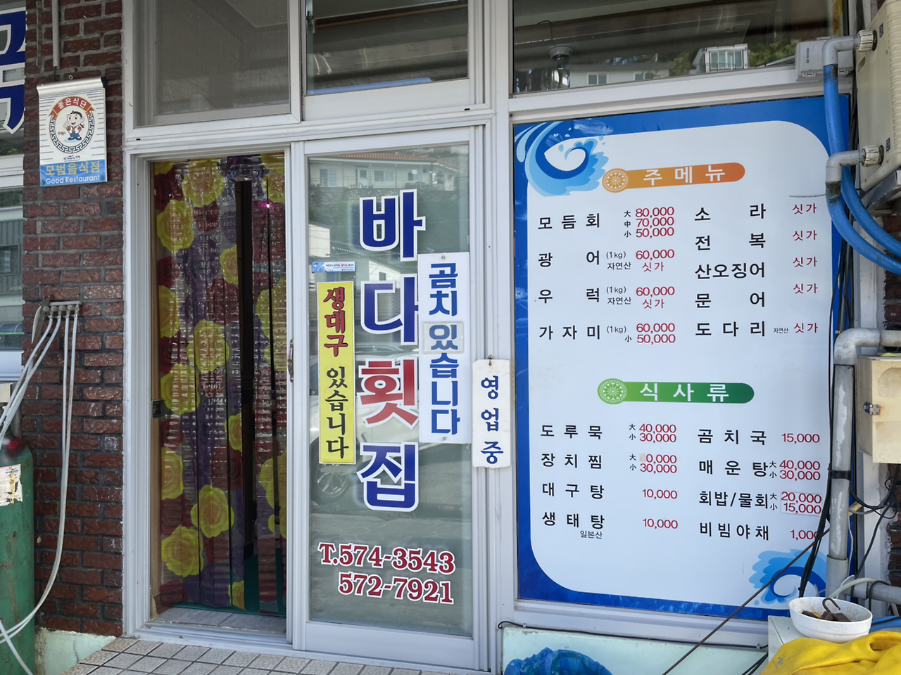 동해의 밥상은 서해와 달리 간소하면서도 직관적인데, 이 식당에서도 역시 말린 오징어 조림과 열무김치, 미역줄기무침 등 소박한 가정식 반찬에 곰치국이 한 대접 나온다. 곰치는 흐물거리는 살 때문에 젓가락 대신 수저로 떠먹어야 하는 생선인데 칼칼한 국물과 함께 생선살을 후루룩 먹으면 전날 먹은 술이 단박에 달아난다.