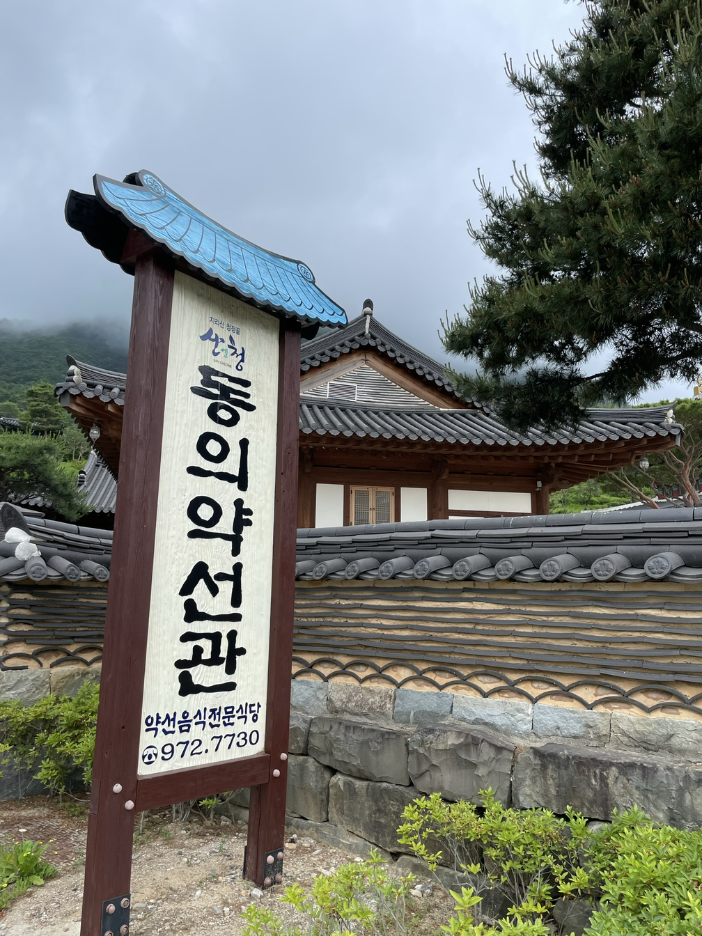 한방테마파크 內 자리한 <동의약선관>은 산청에서 나고 자란 청정약초와 농특산물로 만든 음식을 제대로 맛볼 수 있는 한정식당이다. 동의약선관의 모든 음식은 발효시킨 효소와 전통장을 베이스로 하여 조리되는데, 서울에서는 보기 힘든 '상다리 부러질 만큼' 화려하면서도 푸짐한 한상이 차려진다.