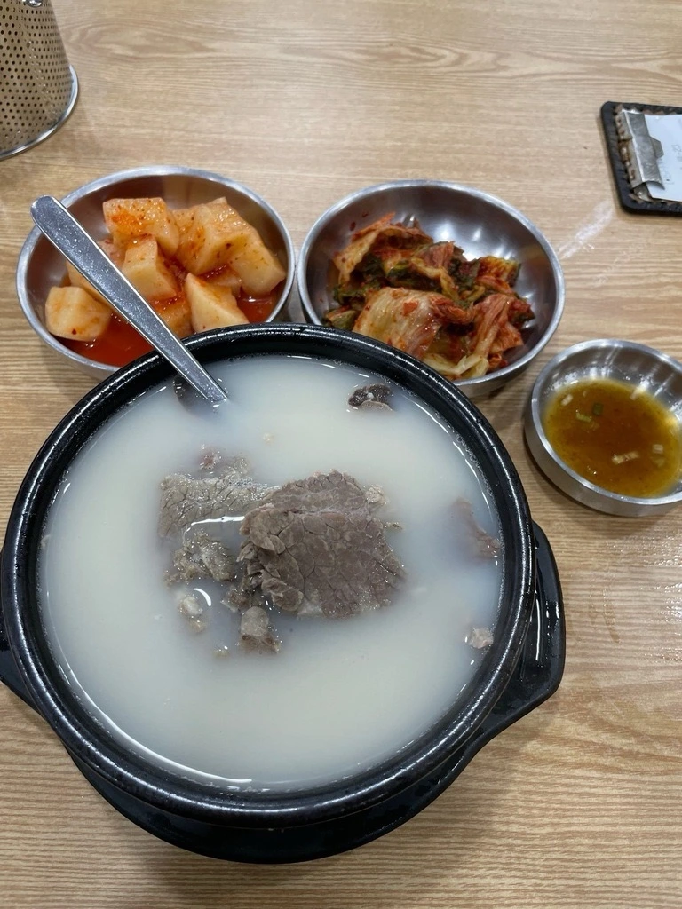 주문한 음식은 <특설농탕>이다. 국밥집에서의 주문은 거의 '특'으로 주문하는데, 국밥 전문 식당에서 '특'은 '양 많이'가 아니라 <일반국밥보다 다양한 부위>를 의미하기 때문이다.