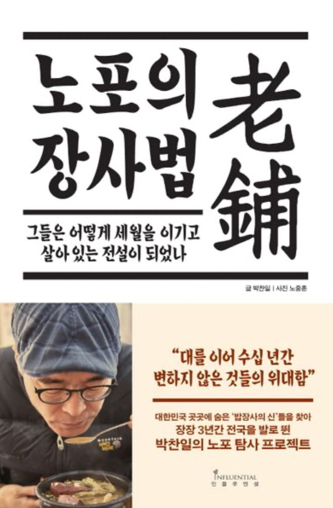현재 우리가 즐기고 있는 노포 열풍은 글 쓰는 요리사, 박찬일 셰프의 「노포의 장사법」에서 시작되었다고 해도 과언이 아니다. 오래된 가게를 고포(古鋪)라 하지 않고, 노포(老鋪)라 부르기 시작한 것도 '오래되어 낡은' 것이 아니라 '세월을 머금고 무르익었기'때문이라는 그의 철학을 사회가 받아들여서라고 생각한다.