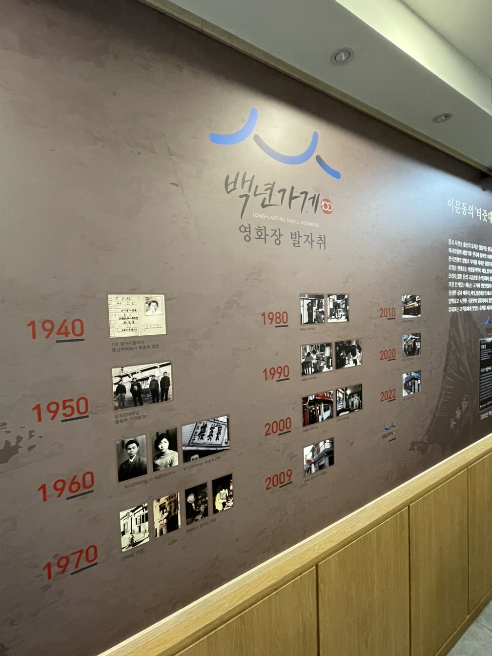 한국외대 역 이문동에 자리 잡은 터줏대감이자 3대 대물림 화상 노포의 한쪽 벽면에는 자랑스러운 「영화장」의 역사가 자세히 기록되어 있다.