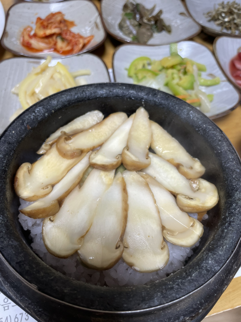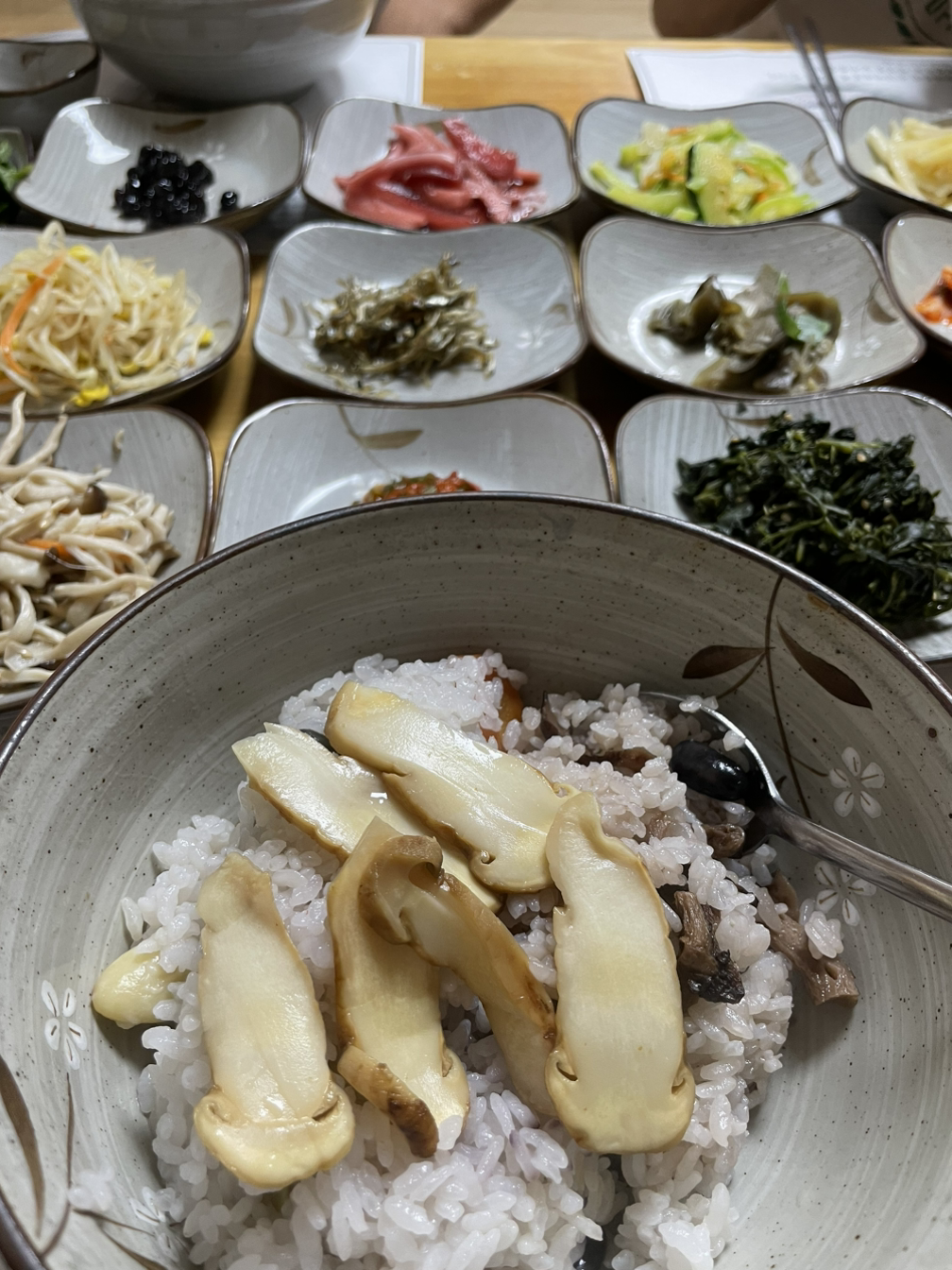 예로부터 일능이, 이표고, 삼송이라 했으니 능이솥밥과 송이솥밥을 함께 주문하여 아내와 함께 반씩 나눠 먹었다. 솥밥 뜸 들이는 단계에서 송이를 올렸는지 솥뚜껑을 열자 뜨거운 김과 함께 송이향이 확 퍼져 나온다.