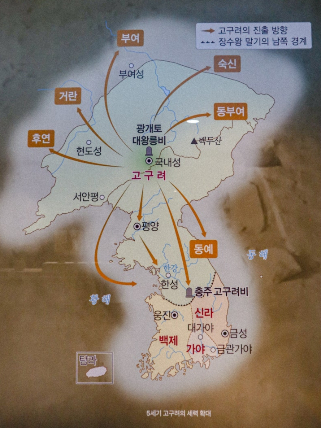 그리하여 충주에는 고구려 장수왕 시절 남한강 유역의 여러 성을 공략하여 개척한 것을 기념한 「중원 고구려비」, 백제의 우수한 철기 문화의 정점을 보여주는 백제의 「제철 유적」, 한반도 3대 악성(樂聖)인 우륵이 신라 진흥왕 시절 가야국에서 망명하여 가야금을 연주했다는 「탄금대」 등 삼국시대 각 국의 흔적이 고스란히 새겨져 있다.