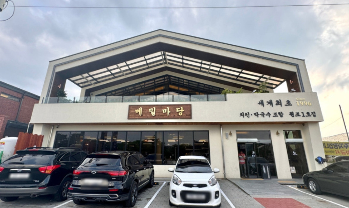 메밀막국수와 메밀반죽 치킨의 조합의 원조 식당이라는 충주 중앙탑면의「메밀마당」이라는 식당에 얽힌 이야기도 재미있다. 강원도가 고향인 주인장이 1996년 이곳에 터를 잡고 고깃집을 시작했으나 생각만큼 잘 되지 않던 차에 당시 충청도에선 흔치 않았던 메밀 막국수를 기본으로 하되 곁들임 음식으로 메밀가루 물반죽으로 튀긴 치킨을 내놓으니 그때부터 대박을 쳤다고 한다. 30여 년 가까이 된 업장이나 작년 화재로 건물을 리모델링하여 카페처럼 깔끔한 외관에 최첨단 키오스크 주문 방식을 채용한 것도 이채롭다.
