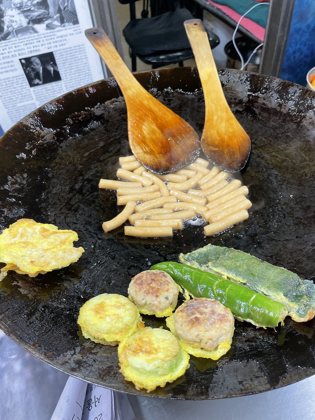 서울미래유산으로 등재된 「기름떡볶이」라는 이 생소한 음식의 시작은 점포도, 간판도 없는 노점이었다. 1956년, 실향민 맹씨 할머니가 자하문로 길가에 번철을 올린 것이 통인시장 기름떡볶이의 시초다.