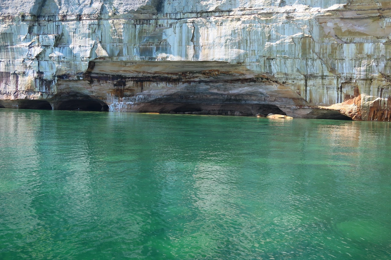 아이들과 함께 하지 않는 여행은 엔터테인 할 필요가 없으므로 오롯이 내가 보고 싶은 것에 집중할 수 있어 좋다. UP 미시간은 번잡함에서 벗어나 깊숙한 자연에 침잠해 슈퍼리오호를 중심으로 자그마한 도시가 형성되어 있다. 미시간호나 휴런호는 접해 본 적이 있지만 북반도에 위치한 슈페리어호(the Lake Superior)는 글자 그대로 5대 호수 중에서 최고 호수였다. 가장 크고, 깊고, 차갑고, 깨끗한 호수로 신성함이 묻어났다. 수페리호에서 본 Pictured Rock은 깎아지른 절벽이 호수에 맞닿아 무늬와 색깔이 마치 그린 것 같아 붙여진 이름이다. 끝도 없이 이어지는 절벽과 에머럴드 물색이 호수가 얼마나 깊은지를 말해주고 있었다.
