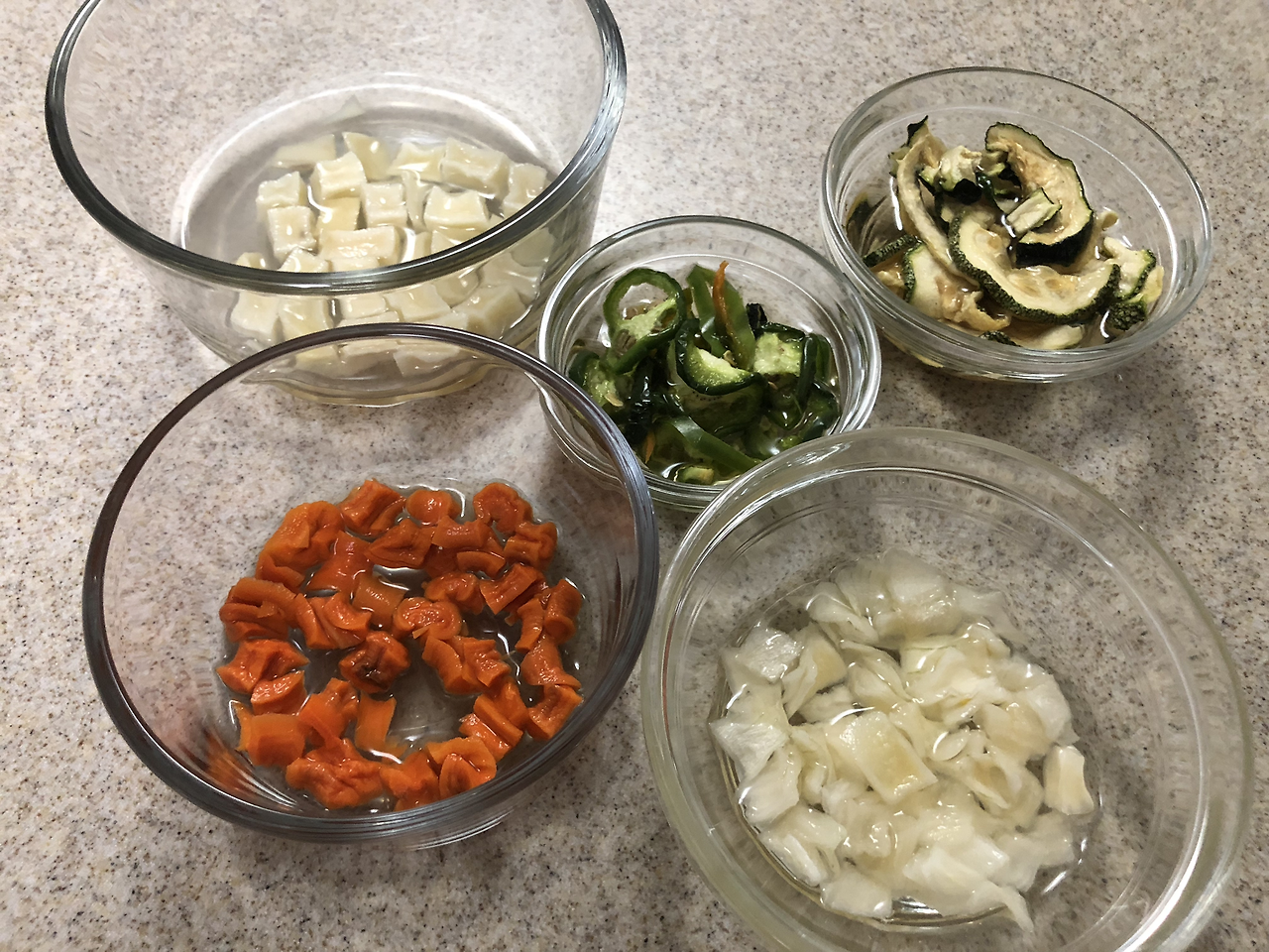 1. 말린 야채를 약 30분 정도 물에 불린다.