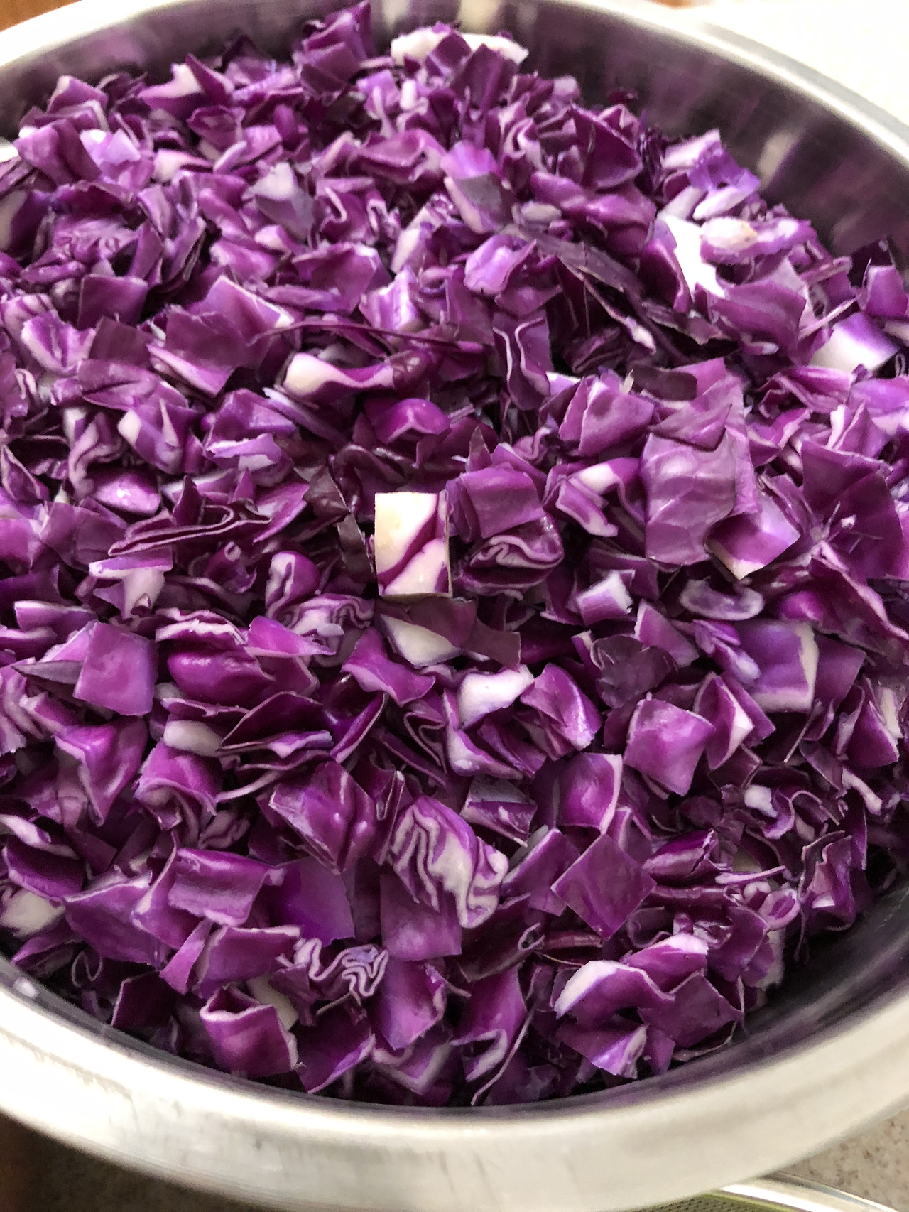 양배추에서 나온 보라색이 토마토의 붉은색에 가해져 진한 붉은색이 되고 샐러리, 당근, 양파와 마늘이 어울려진 색채의 향연이다. 이렇게 고운 색에는 파이토케미컬(phytochemical)이 많이 들어 있어 섭취하면 건강에 좋다고 한다.
