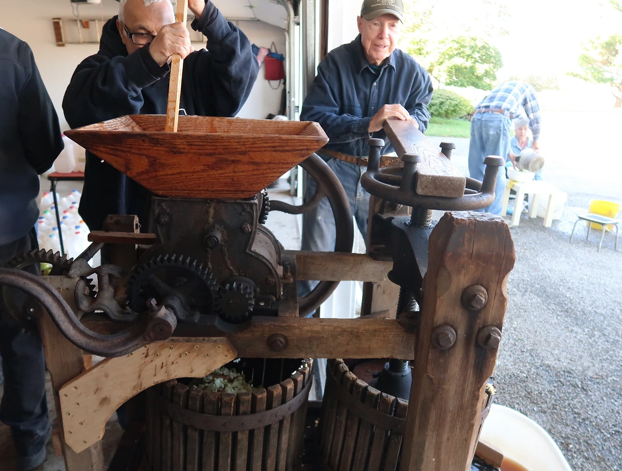 애플 사이더를 만드는 기계는 1800년대에 만들어진 기계라고 한다. 기계는 두 부분으로 나누어져 있는데 한쪽 통에서 사과를 으깨고 보내면 다른 한쪽에서 압축기를 통해 사과의 즙을 짜낸다. 이렇게 해서 만들어진 애플 사이더를 통에 담아 보관하고 나머지 찌꺼기는 밭으로 가서 퇴비로 쓰인다. 압축기는 마치 볼트를 조이듯 한쪽 방향으로 틀어가면서 밑으로 내려 누르면 즙이 짜져 나온다.
