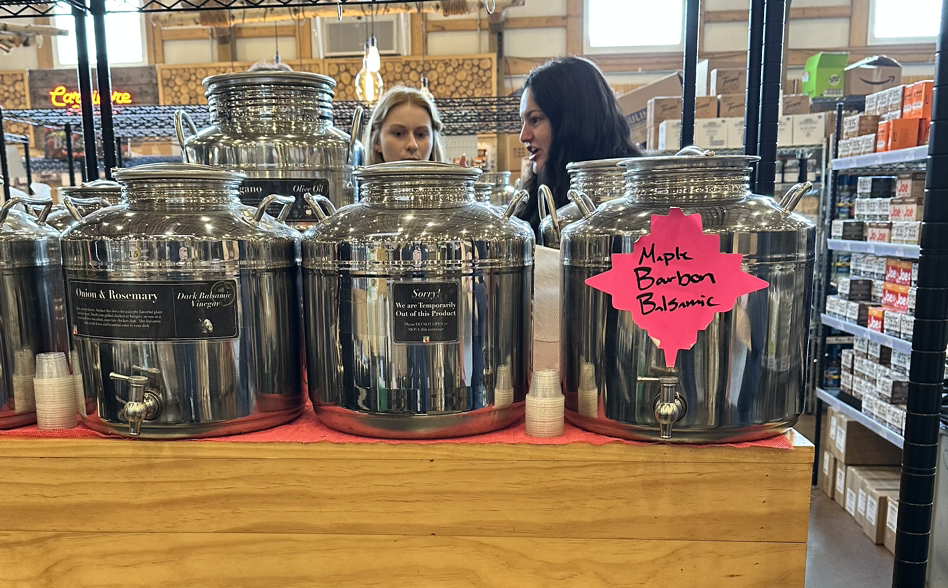 지난주 다시 방문할 기회가 생겨 이번엔 천천히 돌아보게 되었다. 이 가게의 포인트는 뒤쪽에 마련된 수십 종의 커피와 차, 식초가 커다란 스테인리스 통에 주조되어 있었고 이를 시음할 수가 있으며 필요한 만큼 담아서 사갈 수 있게 되어있다.