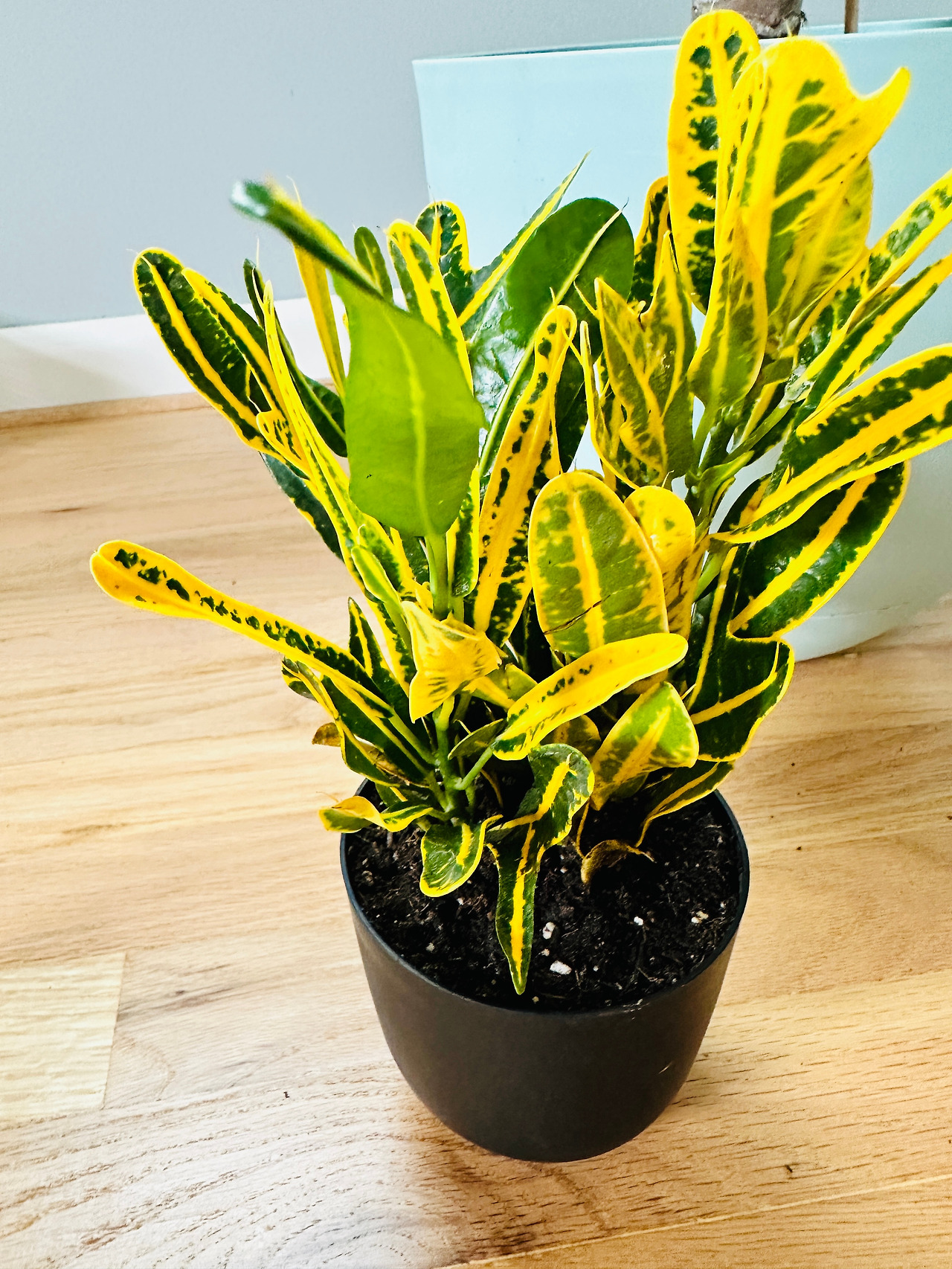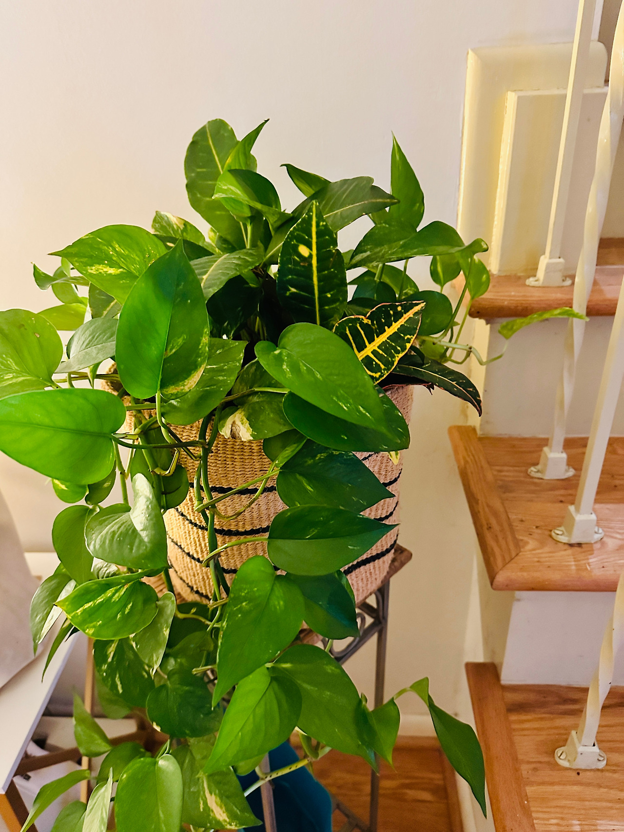 앙징맞게 귀엽고 노란색의 식물이 바나나를 닮았다 하여 바나나 식물이라 불리는데 노란색 붉은색등 여러 가지 종류의 색이 있다. 실내 식물이 거의 초록색인데 꽃이 아니면서 색을 내고 싶다면 크로톤이 최고다. 적도의 열대 나무를 연상시키므로 인테리어에 그만이다. 스킨답서스와 빨간 크로톤을 같이 심어 풍성한 느낌을 주었다.(상위)
