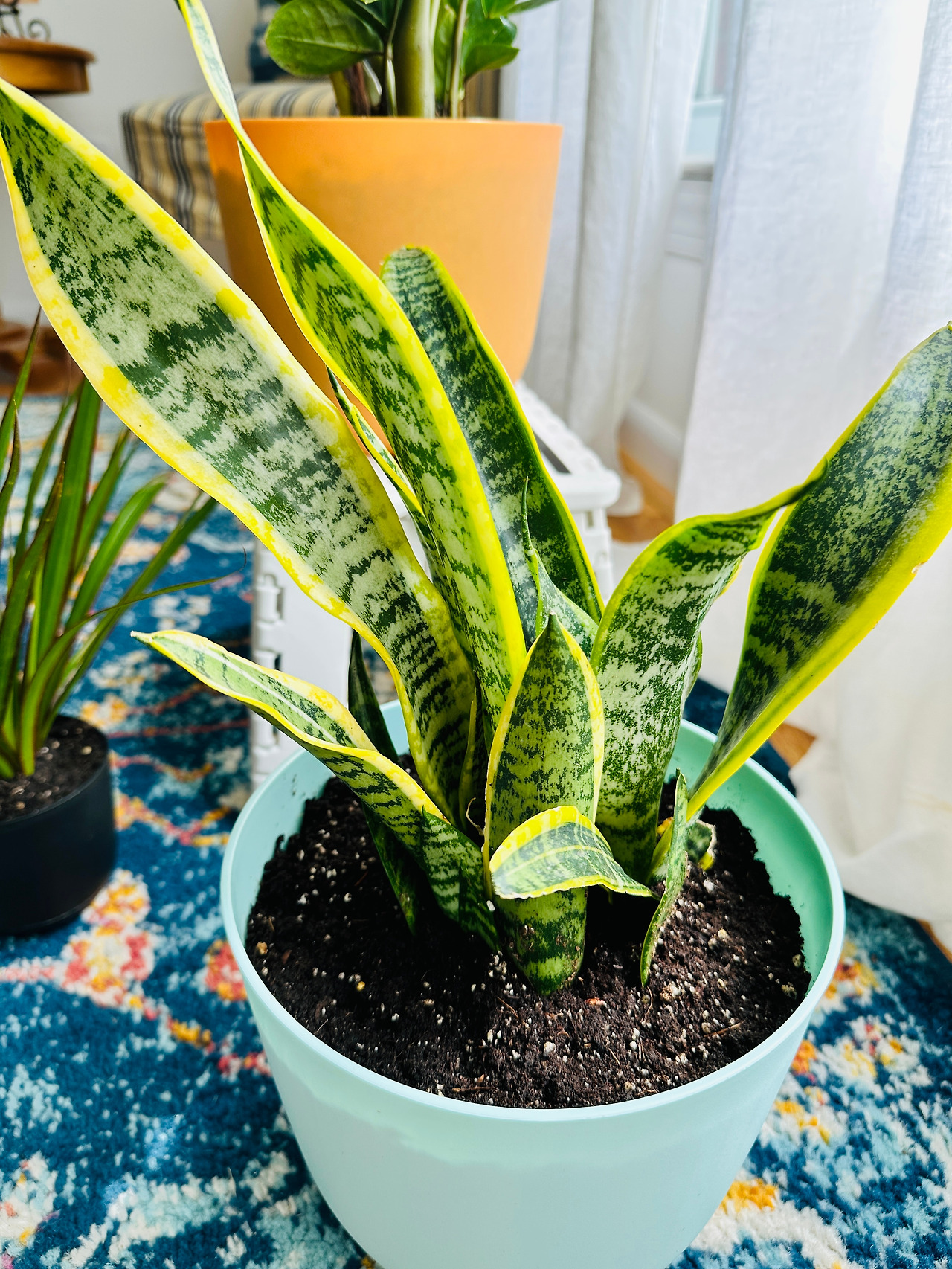내가 유일하게 이름을 알고 있었던 산세베리아는 역시 잎이 두텁고 가장자리가 노란색으로 테두리가 되어 있다. 고향 생각에 마지막으로 들인 식물이다. 음이온을 방출하는 식물로 현관에서 가까운 곳에 두면 부정적인 기운으로부터 집을 보호하는 기능을 한다고 한다.