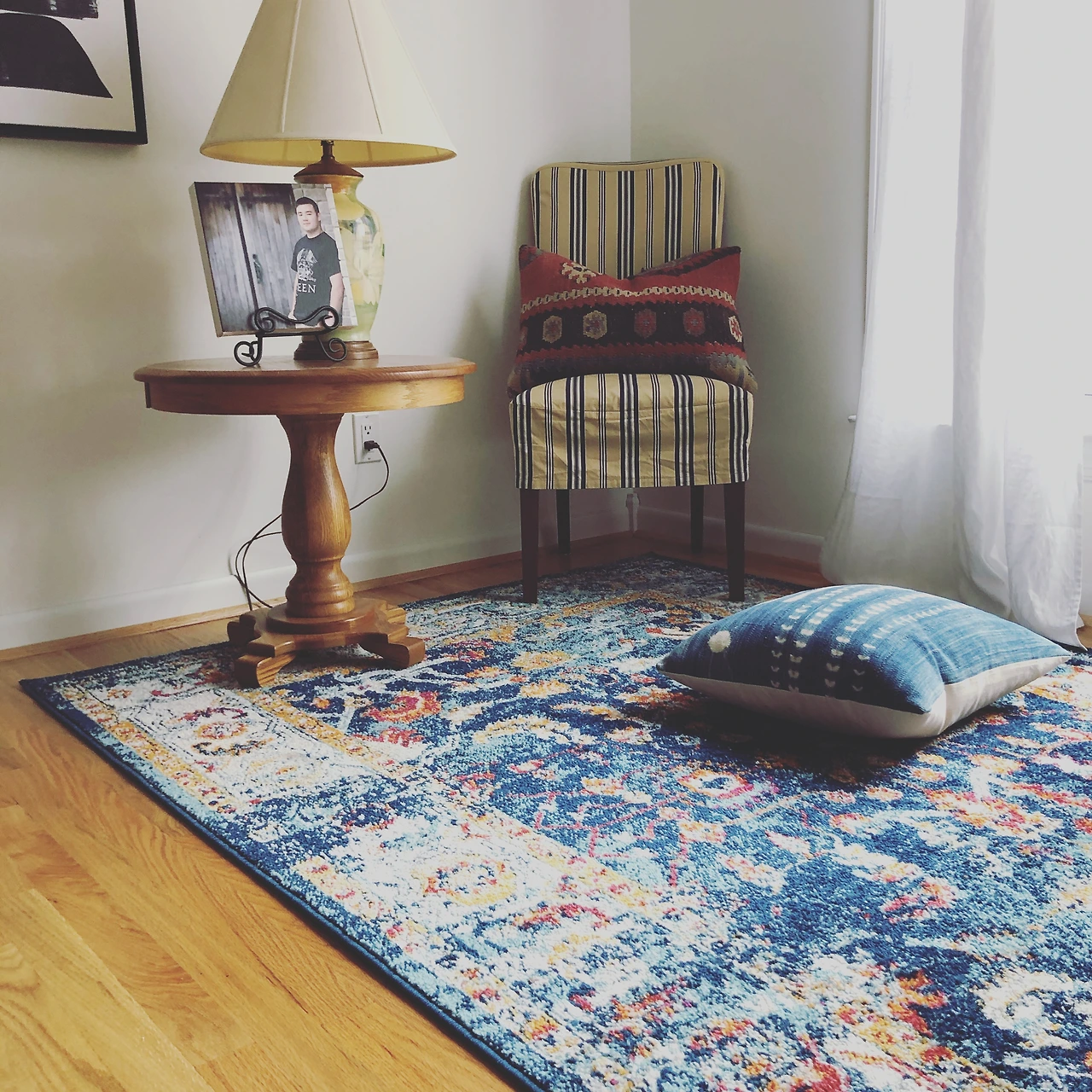 너무 단조롭다는 생각이 들 때 보헤미안 스타일의 화려한 색감의 천으로 된 쿠션, 러그의 사진이 눈에 들어왔다. 심플하고 미니멀한 스칸디 스타일이 마음을 가라 앉히고 휴식을 취하기에 더없이 좋은 스타일인데 피아노 룸을 디자인할 때는 뭔가 창의적인 두뇌를 자극시킬 수 있는 것이 필요했다. 인디고 (indigo) 짙은 청록색이 마음에 끌려 들어왔다. 마루 바닥이 전체적으로 따뜻한 느낌을 주니까 대비되는 푸른색이 끌려 왔는지 모른다.
