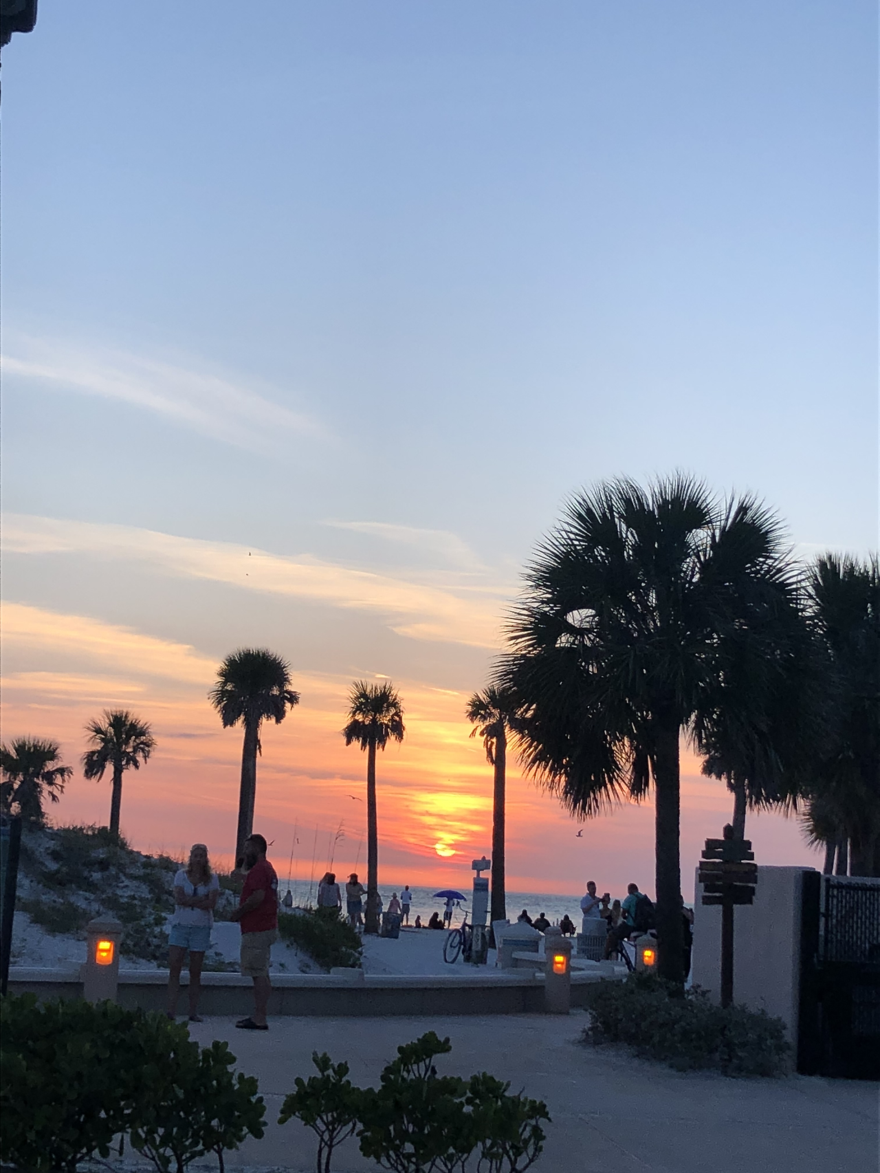 클리어 워터 비치는 하얀 조개들이 바스러져 만들어져 하얀색으로 깨끗하여 화이트 비치라 불리는데 알갱이가 고와서 마치 밀가루 같은 느낌이 들 정도로 곱다. 플로리다 해변 중에서도 가장 아름다운 해변이라고 하니 정말 그러했다. 비치를 따라서 힐튼, 하얏트, 쉐라톤 호텔이 늘어서 있고 그 옆으로 콘도미니엄들이 즐비했다.
