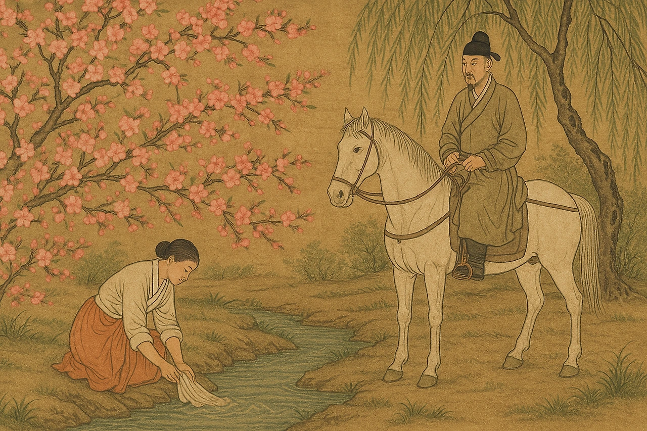 浣沙溪上傍垂楊 빨래터 곁에는 수양버들이 늘어져 있고