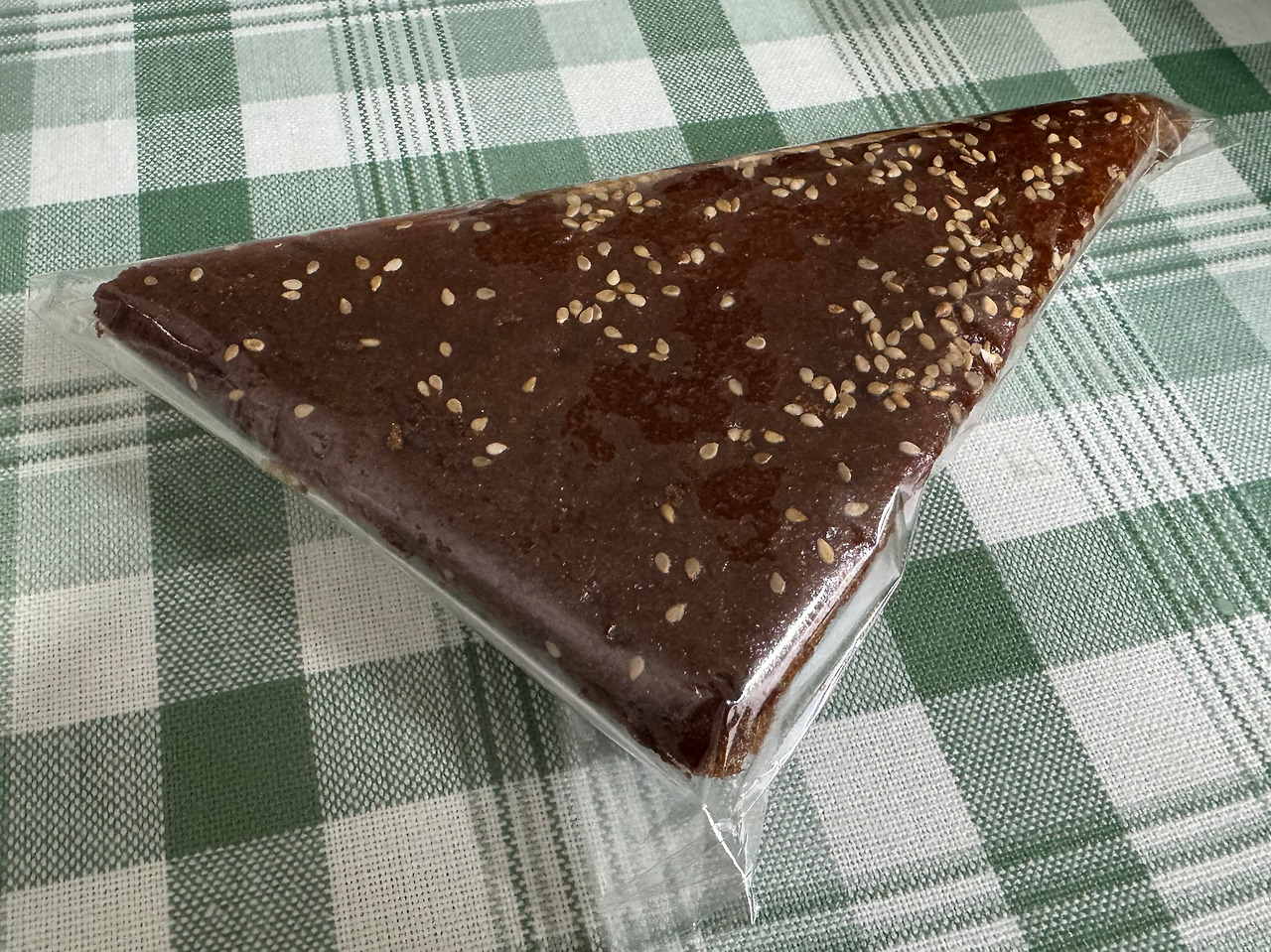 겉보기에는 검은 카스텔라처럼 생겼는데, 폭신하기보다는 다소 쫄깃한 식감입니다. 잘라 놓은 술빵처럼 생겼지만 누룩향은 느껴지지 않습니다. 요리서에 기록된 '남만병'과 차이가 느껴지는 부분은 참깨와 건포도가 박혀 있다는 정도입니다.