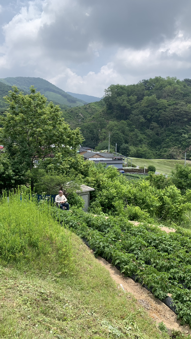 어머님은 온 김에 큰집 어르신들 묘소까지 갔다 오신다고 아들들과 동생들을 데리고 난데없는 옆산 등산길에 오르셨다. 무릎도 안 좋으신데 말린다고 들을 양반도 아니고.. 포비의 표정이 또 안좋아졌지만 군말없이 따라갔다. 나와 아버님 둘만 남겨진 상태. 산소 앞에 감자밭이 있어 밭을 망치며 밀고 들어갈 수 없었다. 어쩔수 없이 봉분이 보이는 나무 그늘 밑에 휠체어를 파킹(?) 해 둔 터였다. 아버님은 작은 소리로 ”예전엔 이게(감자밭)이 없었는데...“하며 연신 눈을 훔치셨다.