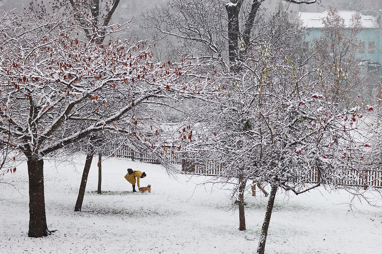 새하얗게 첫눈이 내린 산책로에는 보통의 날보다 더 이르게 산책자들이 길을 나선 것 같다.