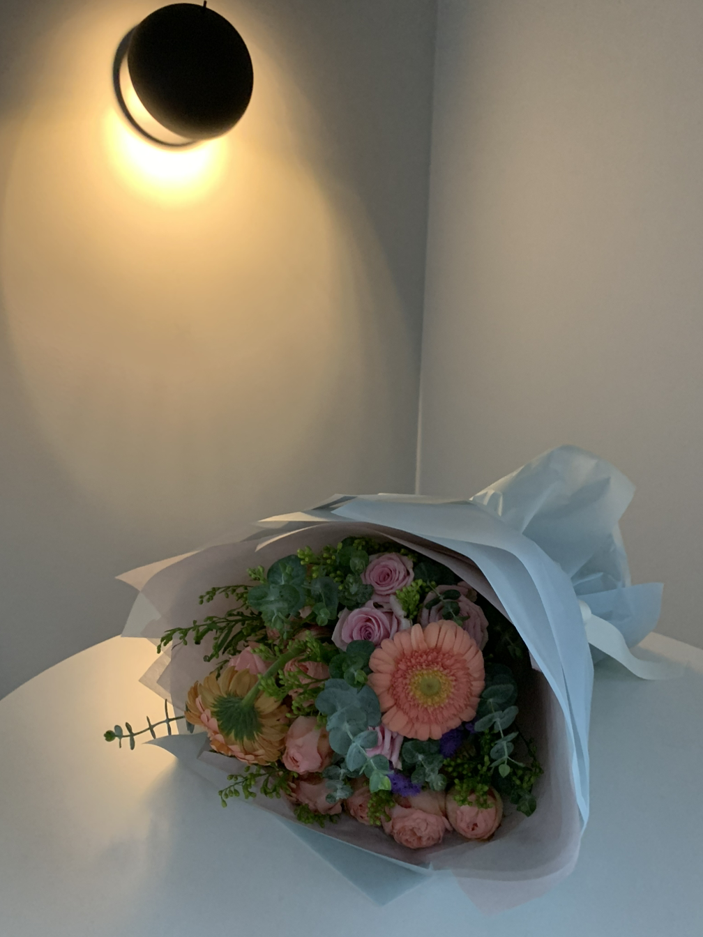 꽃다발 만들기 아홉 번째. 필기•실기 시험 날이다. 45분 동안 한 송이 꽃다발 포장과 꽃다발을 제작하며 그동안의 배움이 얼마큼 스며들었는지 확인하는 시간이다. 잊은 것들, 미처 알지 못했던 것들을 다시 알아가며 작아진 자신을 확인하고 받아들여 본다. 작아졌다 느끼는 것도 실은 더 활짝 피려고 웅크린 꽃봉오리 상태란 걸. 긴장해서 작아진 듯한 심장. 그로 인한 두근거림은 잘하고 싶은 마음이자 도전했다는 반증. 작아졌다는 건 더 커갈 수 있다는 증표. 비록 지금은 움츠러들더라도 점점 더 나아질 거란 믿음이 생겨난다. 친구를 생각하며 만든 한 송이 꽃다발을 친구에게 건네주었다. 내가 만든 꽃을 소중한 사람들에게 주는 기쁨도 작아진 내게 더 크게 느껴진다. 작아진다는 건 참 감사한 감정이다.