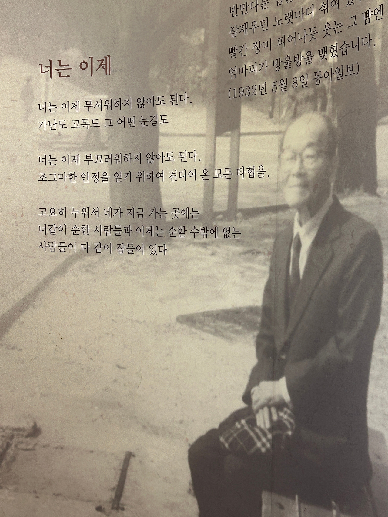 연로하신 할아버지께서 점잖은 모습으로 둘러보시다 '이제 너는' 시구절이 적힌 벽을 한참을 보신다. 서툴게 휴대폰 사진기로 촬영하시고 떠나시는 뒷모습이 눈에 머문다. 그 벽에 기대앉아 피 선생님의 인터뷰를 보고 있던 나는 존재 없이 그곳에서 하나의 소품이 되고 선생님의 동심 속 하나가 된다.