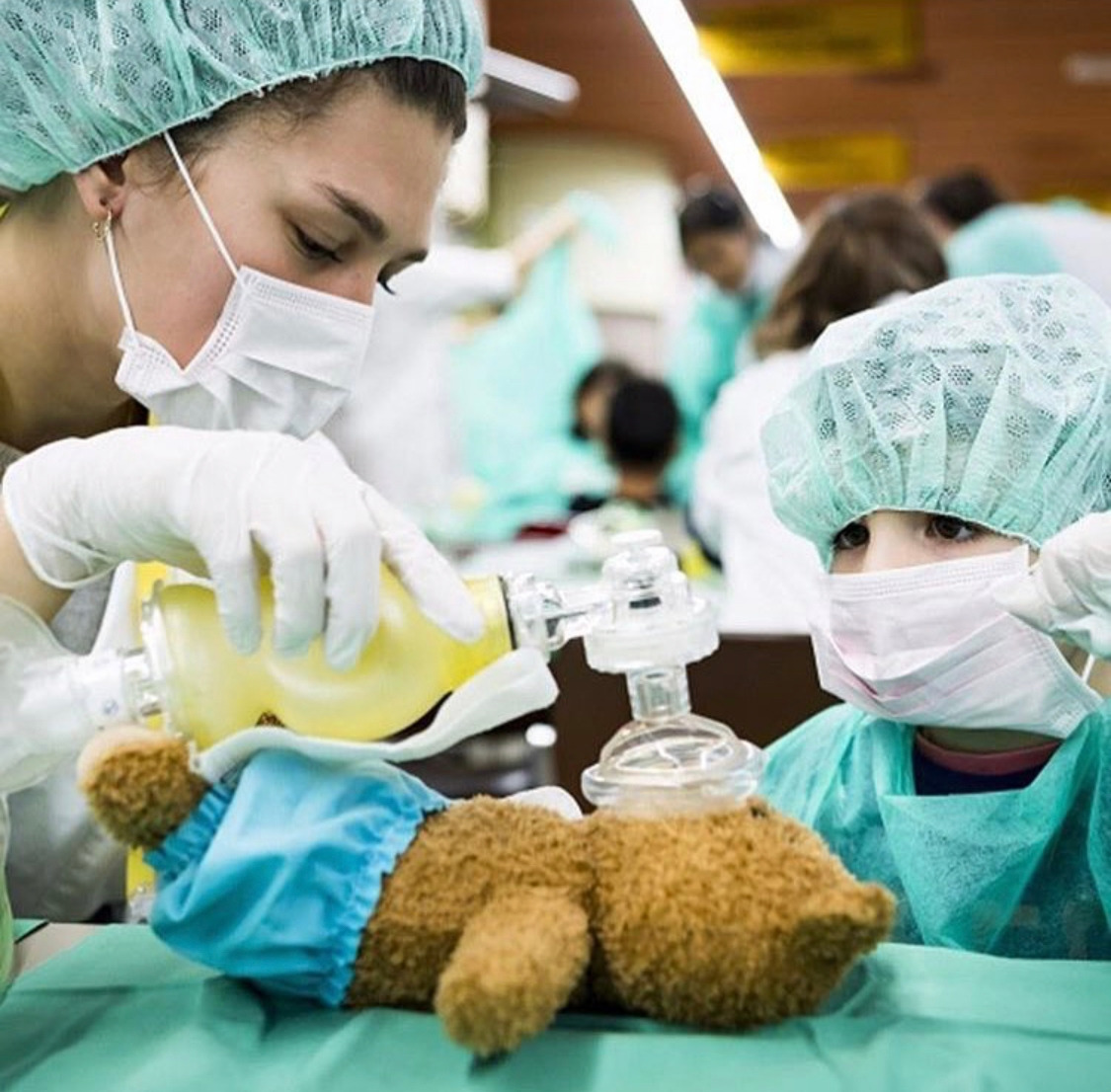 자신이 아끼는 테디베어를 의대생과 함께 치료하고 있는 어린이 (출처 : bbc 인스타그램)