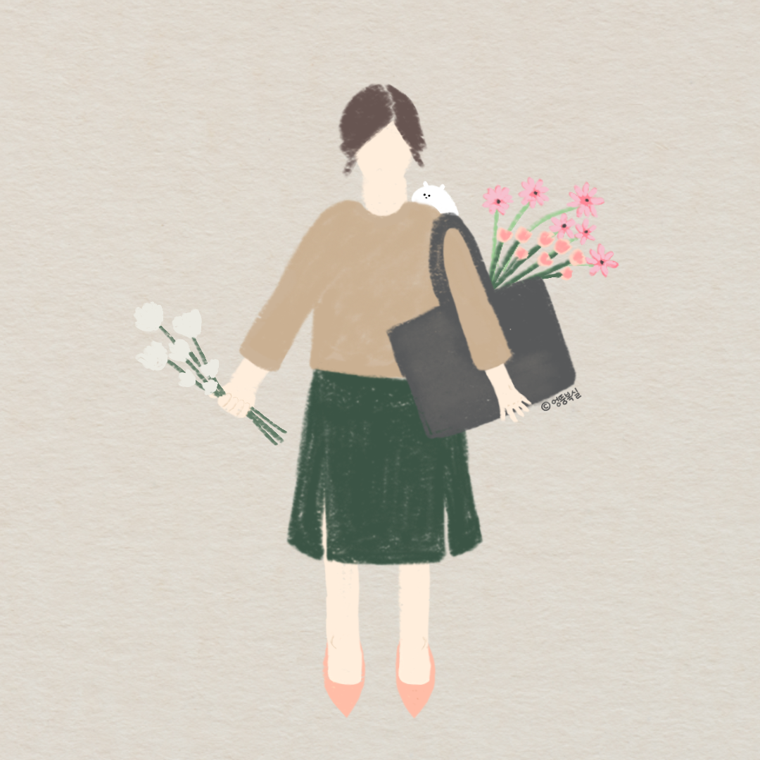 '안녕하세요' 인형 사건 이후. 내가 이상하다는 사실이 명백해진 것 같았다. 그때부터 복실이 보기를 돌같이 보기로 마음먹고 손등으로 툭 밀기, 베개처럼 배고 눕기, 내팽개치기, 외면하기 등 갖가지 도전을 시작했다. 그와 동시에 묵언수행에 가까울 정도로 급격히 말수가 줄어들었고, 우울감이 몰려왔다. 평소랑 달라진 날 보던 아빠는 엄마에게 자초지종을 듣고 나서, 별일 아닌 듯 피식 웃으며, '그게 널 행복하게 하면 된 거지, 뭐가 문제야' 하시는 것이다. 뾰로롱. 저주에서 풀려난 듯, 난 다시 복실이를 소중하게 가슴에 꼭 끌어안았다. 그때 난, 33살이었다. 때론, 정확한 말 한마디가 비정상을 정상으로 만든다.