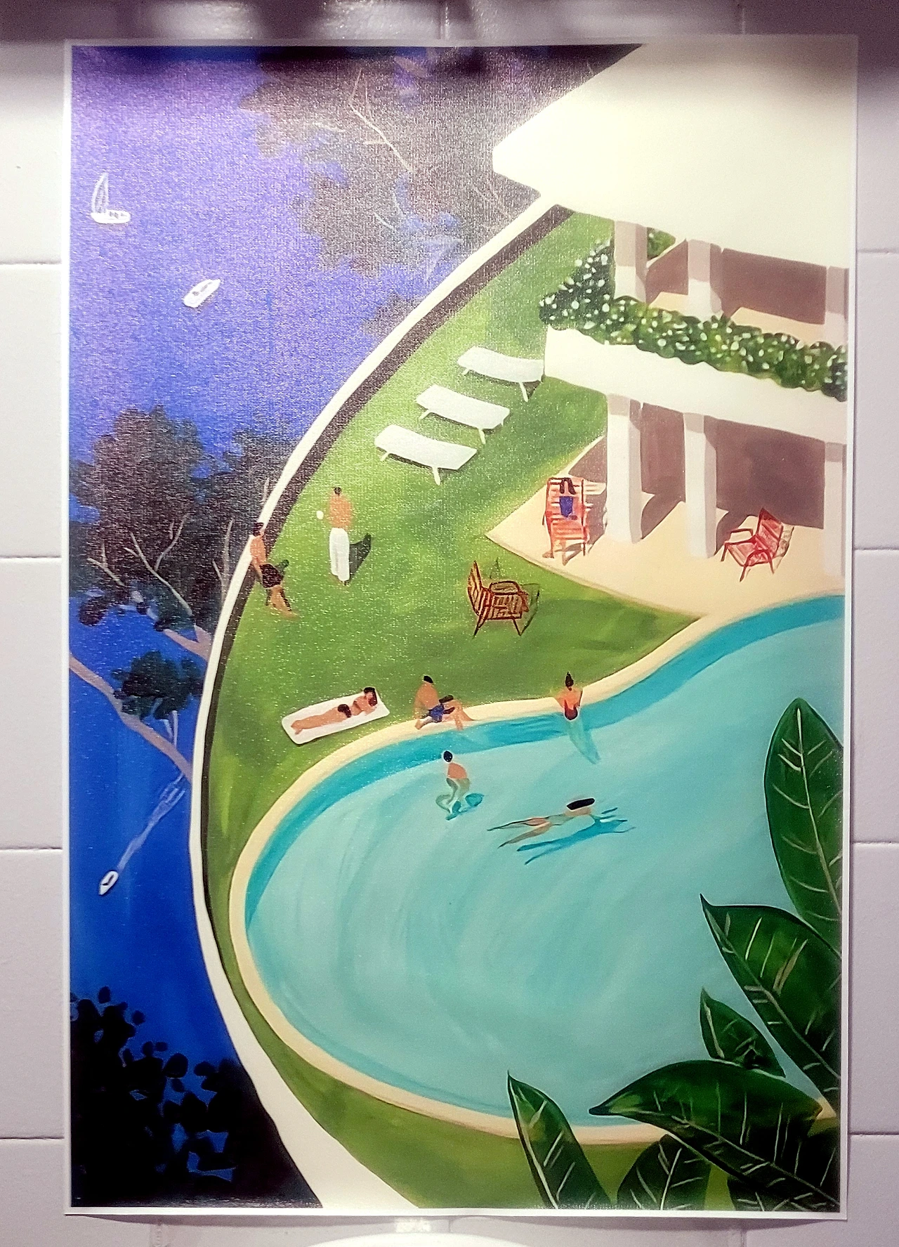 나는 또 페인팅과 별개로 문화생활에 대한 나의 갈망과 일상에서의 일탈을 도와줄 그림을 화장실의 눈에 잘 띄는 곳에 붙여놓았는데(그림 참고), 해외 직구 사이트에서 몇 천 원이면 누릴 수 있는 호화로움을 우리 집 화장실 한편에 옮겨놓고, 그림으로 조금이나마 마음을 달래보고자 함이었다.