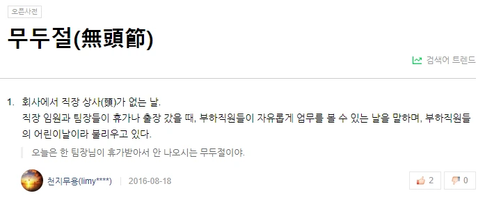 두 분의 대화 중 유독 하이텐션을 내뿜으며 내 귓가에 선명하게 꽂혔던 단어 ‘무.두.절’. 단어를 듣자마자 궁금한 나머지 무슨 뜻이냐고 물었다. 두 분은 나에게 그 의미를 친절히 설명해주셨다.