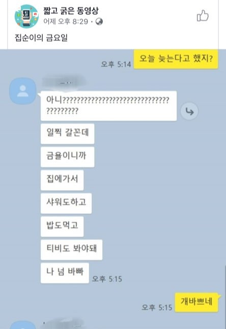 페이스북에서 집순이의 금요일이라는 짤을 참 재밌게 봤는데요. (사실 제가 집돌이 이기도 합니다만..) 집순이에게는 굉장히 바쁠 예정인 금요일 저녁시간이지만, 어떤 친구가 보기엔 '응? 저게 뭐가 바쁘다는 거야?'라는 생각이 들 수 있는 상황입니다.