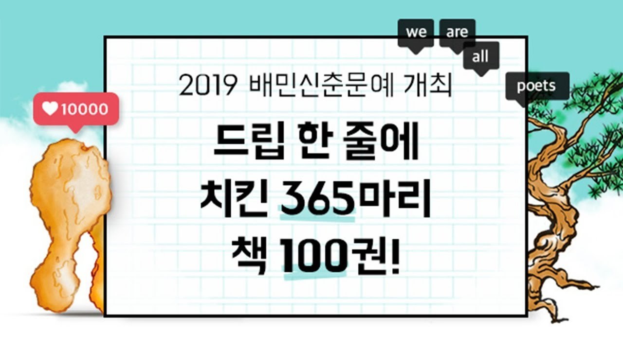 배달의민족에서는 매년 ‘우리는 모두 시인이다’라는 모토로 음식을 주제로 한 짧은 시들을 제출받고, 수상작을 선정한다.