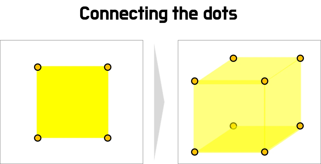 혹시나 변화를 이끌고 싶은 마음은 가득함에도 불구하고 해결책이 보이지 않거나 꾸준히 창의성을 높이고자 하는 의지가 마음속에 있다면? 자신이 전문성을 높이고 싶은 분야, 주제와 관련된 점들을 최대한 많이 찍어보면 어떨까? 경험이라는 점들을 같은 페이지 위에 찍어둘 때 연결될 확률은 좀 더 높아지고, 점의 숫자가 늘어날수록 평면적 도형이 아닌 입체적 도형으로 탄생할 확률 역시 높아질 것이다.