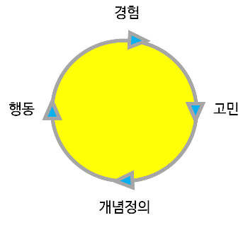 수없이 많은 인간의 뇌의 기능을 단 한마디로 말하면 ‘학습(Learning)'으로 정의할 수 있고, 학습은 아래 그림과 같이 새로운 경험을 시작으로 원을 그리며 이뤄진다는 것입니다. 눈덩이를 굴릴수록 커지는 것처럼 이 학습 사이클의 원을 굴렁쇠처럼 계속해서 굴릴수록 우리는 더 많이 배우고, 성장한다고 합니다.