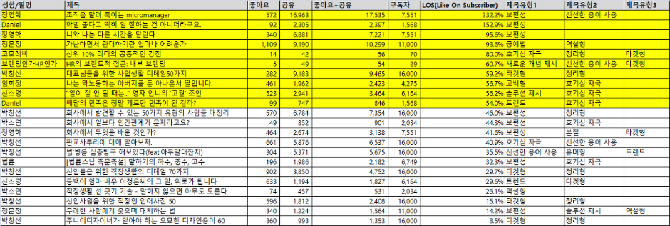 결국 나름의 기준으로 설정한 ROS(구독자 수 대비 반응률) 비율이 50% 이상인 글들의 제목이 가진 속성을 디테일하게 살펴보는 것으로 만족했다. 영화 인터스텔라의 명언처럼 삽질은 나름의 인사이트를 줬다. 구독자분들의 반응을 이끌어낸 제목을 만드는 여러 요소들을 정리한 이 과정이 앞으로도 좋은 제목을 탄생시키는데 나름의 힌트가 되지 않을까?