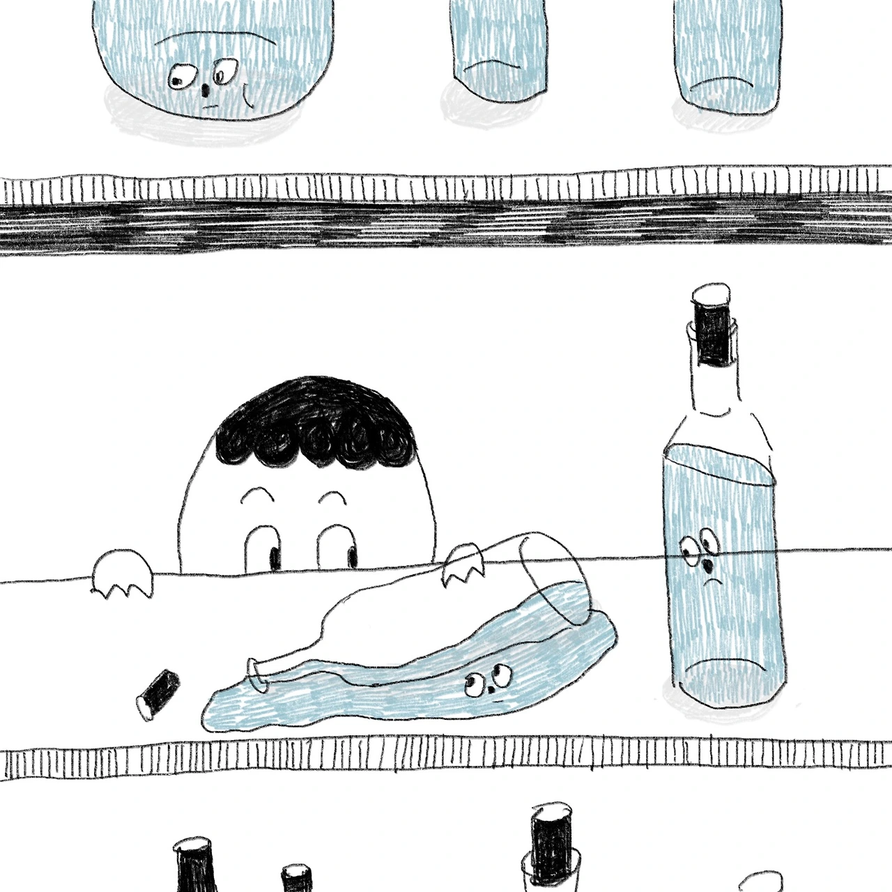 "밥, 잠깐 이리 와봐요." 귀찮다. 맨날 불러내 잔소리만 하는 사장. 그는 내가 녹았다는 이유로 채용했지만 녹았다는 이유로 하루가 멀다 하고 쓴소리를 해댄다. 정부에서 녹은 사람들 때문에 얼마나 많은 돈을 쓰는지, 내가 이 회사에 채용된 것이 얼마나 행운인지. 녹아버린 사람들을 위한 시위에 참가할 생각은 하지도 말라했다. 나는 힘없이 고개를 끄덕이며 자리로 돌아왔다. 내 업무는 녹으나 안 녹으나 전혀 관계없지만 나는 녹아버린 게 마치 죄인 같다.