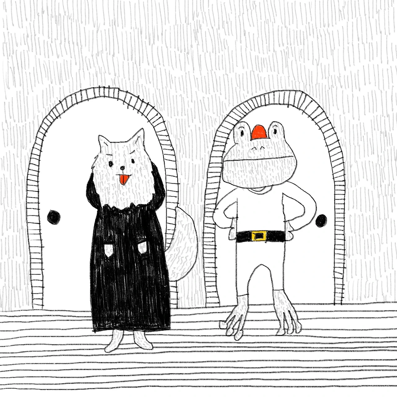 오른쪽 왼쪽. 이 결정으로 내가 얼마나 운이 좋은 사람인지 알 수 있을 것이다. 오른쪽은 귀여운 청개구리가 문 앞을 지키고 있다. 까만 허리띠에 빨간 모자까지 챙겨 쓴 모습이 너무나도 귀엽다. 하지만 이것은 나를 오른쪽으로 이끌기 위한 속임수일지도 모른다. 나는 침을 삼키며 왼쪽을 보았다. 왼쪽에는 보기에도 무시무시한 포메라니안이 서있다. 쭉 째비진 눈과 알 수 없는 어둠을 가진 새까만 코, 사자 같은 갈기를 자랑하는 포메라니안은 머리부터 발끝까지 새까만 천을 두르고 있다. 지옥에서 온 분위기다. 나는 어디로 가야 할까. 한 곳은 나를 찢어발겨 지옥으로 보낼 것이고 한 곳은 나를 어마어마한 부자로 만들어 줄 것이다. 귀여운 청개구리냐 지옥의 포메라니안이냐. 아무리 봐도 청개구리는 속임수인 것 같다. 세상은 대부분 반대다. 착한 사람은 벌을 받고 나쁜 사람은 부귀영화를 누린다. 열심히 회사에 충성하면 팽 당하는 거고, 여우같이 요리조리 옮겨 다니던 동료는 점점 더 높은 곳으로 사라졌다. 뒤에서 험담만 하던 그 녀석은 젠틀하고 멋진 녀석이라 불리고 나는 어쩐지 기분 나쁜 사람이라는 타이틀이 붙었다. 정답은 포메라니안이다. 나는 확신에 차서 문을 열었다.