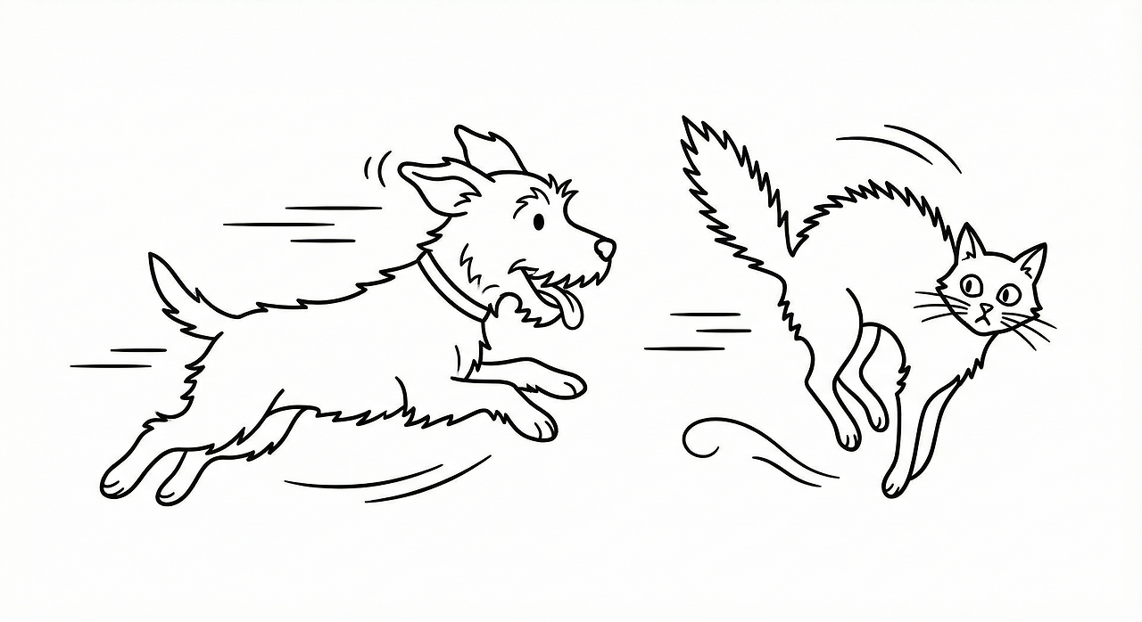 (2) The dog is chasing the cat.