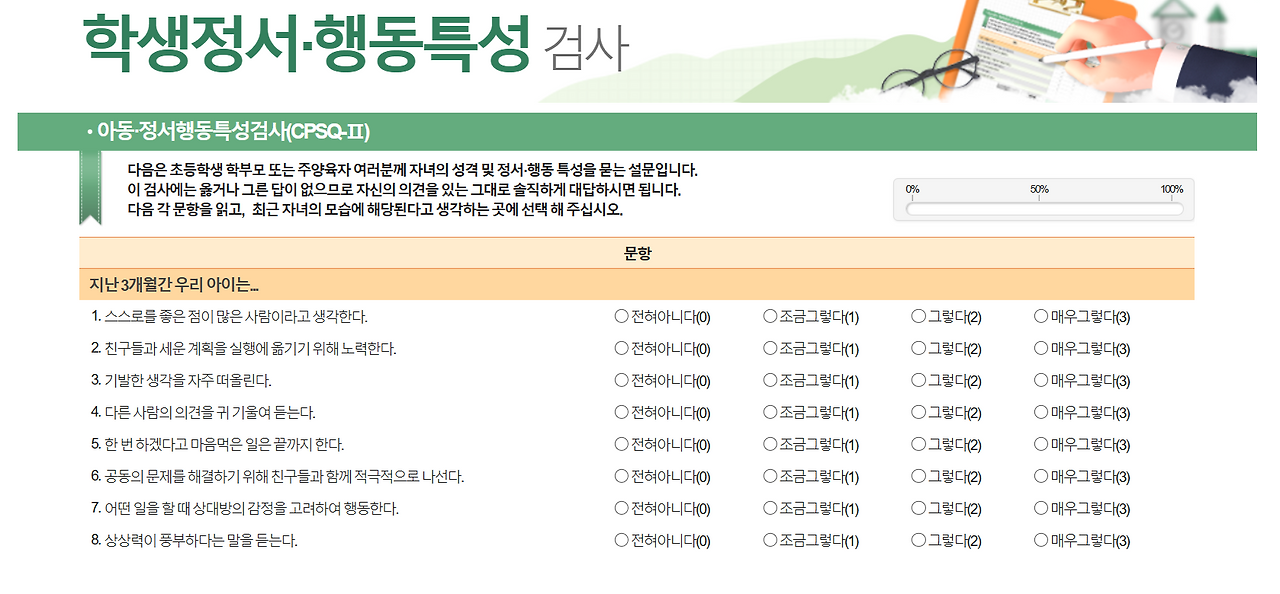 그래서 일까. 매년 1학년, 4학년 대상으로 "학생 정서 행동 특성 검사"를 실시하고 있다.