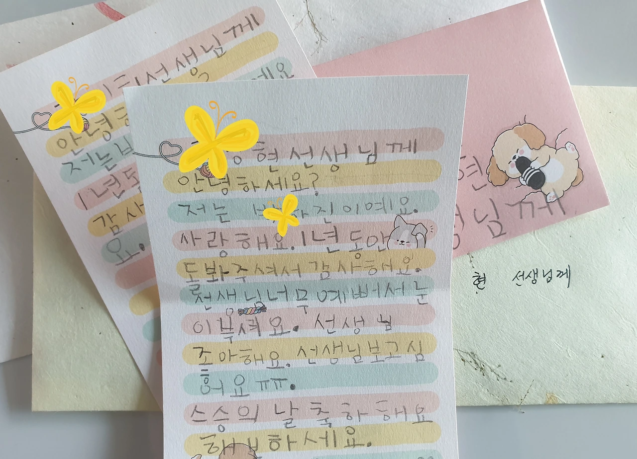 감사한 마음을 다 담기는 어렵지만, 몽실이와 내 편지가 선생님께 조금이라도 위로가 되셨으면 하는 마음으로. 점점 힘겨워지는 교직 생활에서 찰라의 기쁨이라도 드리고 싶은 마음, 힘을 드리고 싶은 마음을 담았다.