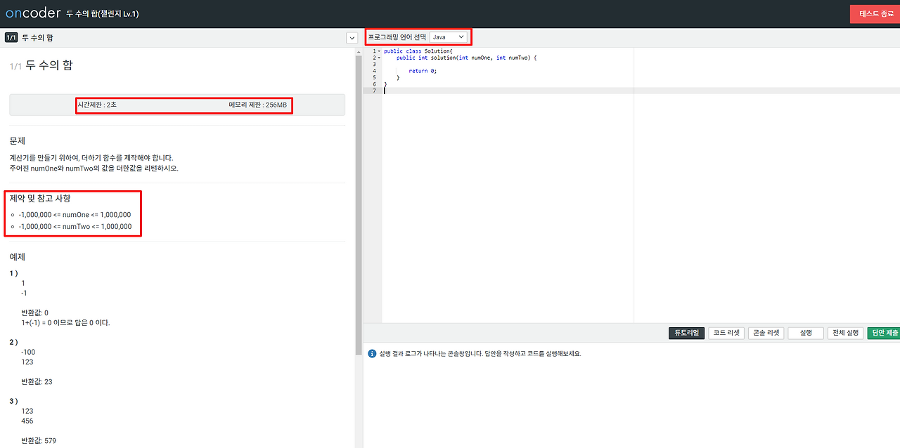 회원 가입을 하면 두 수의 합부터 피보나치, 수열 등 기본적인 10문제를 풀 수 있으니 온라인 코딩 면접 이전에 전부 풀어봅시다.