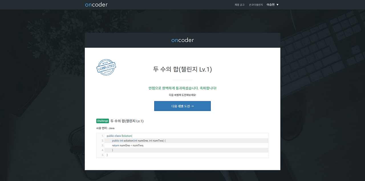 Oncoder는 단순히 합격, 불합격만 나오나 봐요.