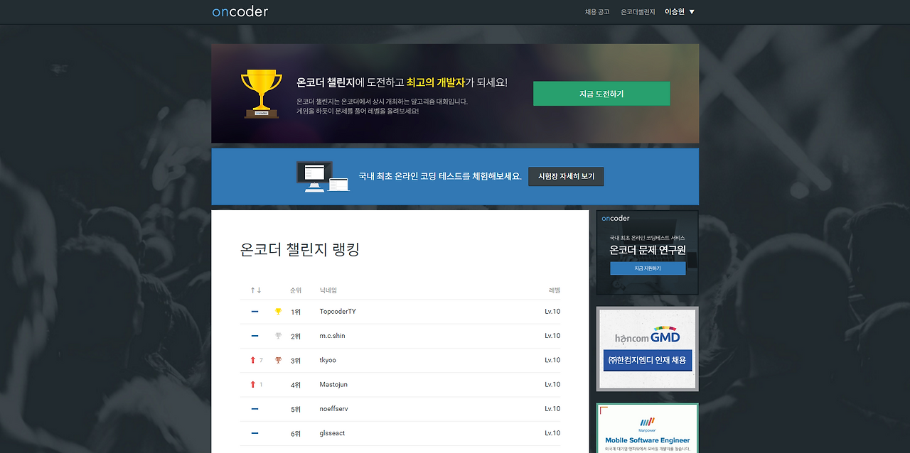 채용공고 메뉴를 클릭해보면 아시겠지만 Oncoder를 통한 온라인 코딩 면접은 아직 많진 않은 거 같아요.