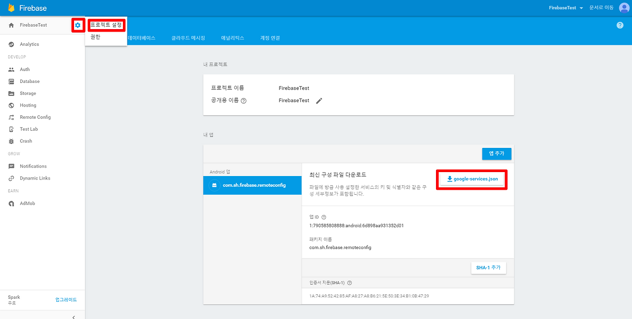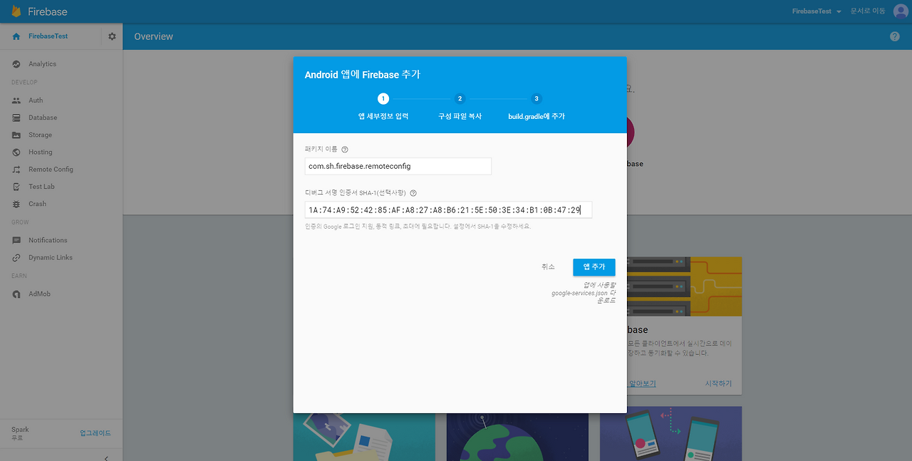 SHA-1은 아래 stackoverflow 방식대로 얻어서 입력합니다.