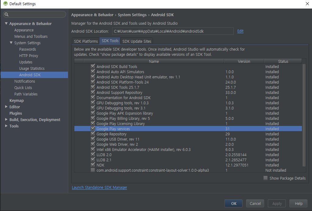 "firebase-core:9.2.0" 이 컴파일되지 않을 때는 아래와 같이 Google Play service 31 버전으로 업데이트해주세요.